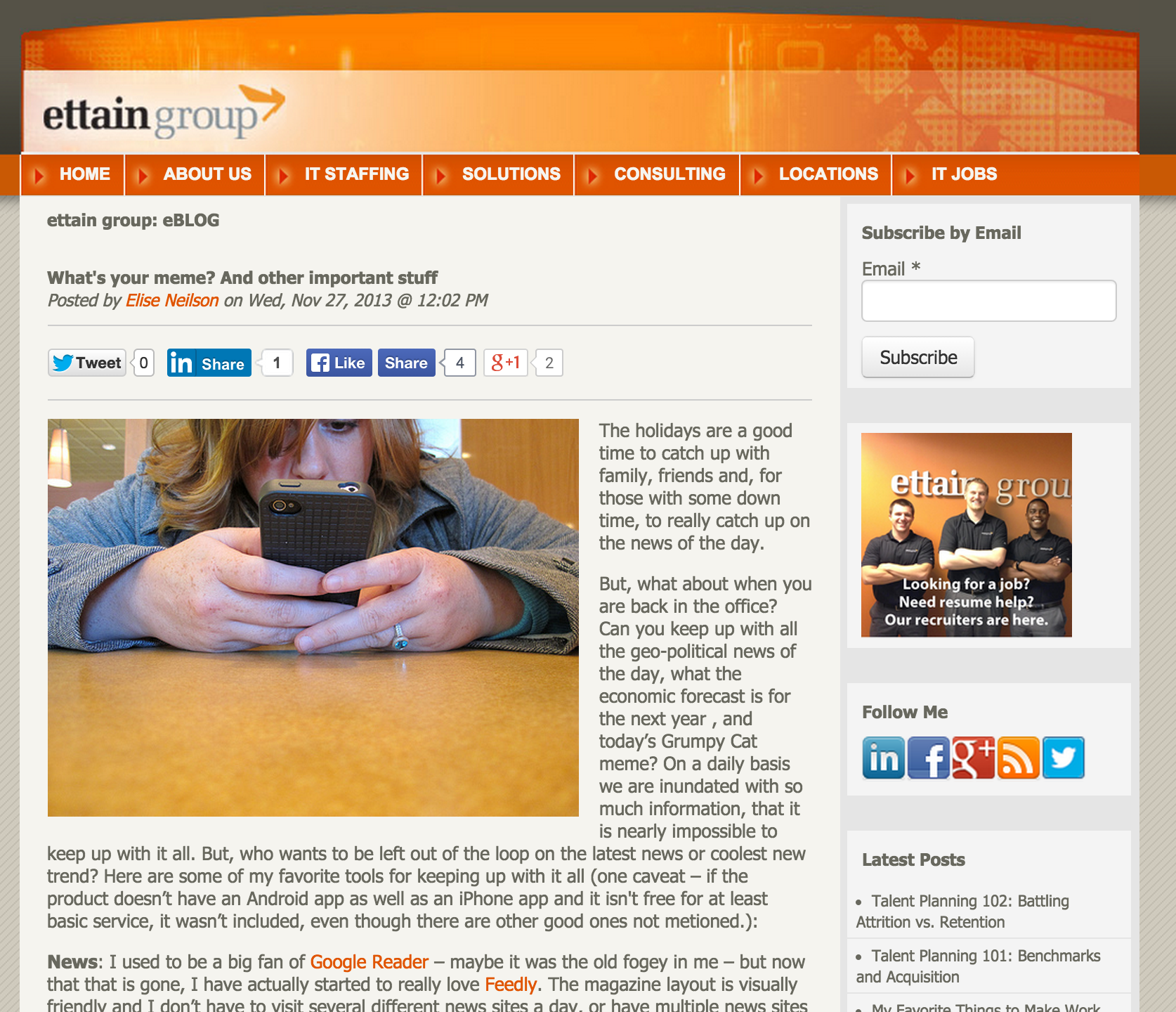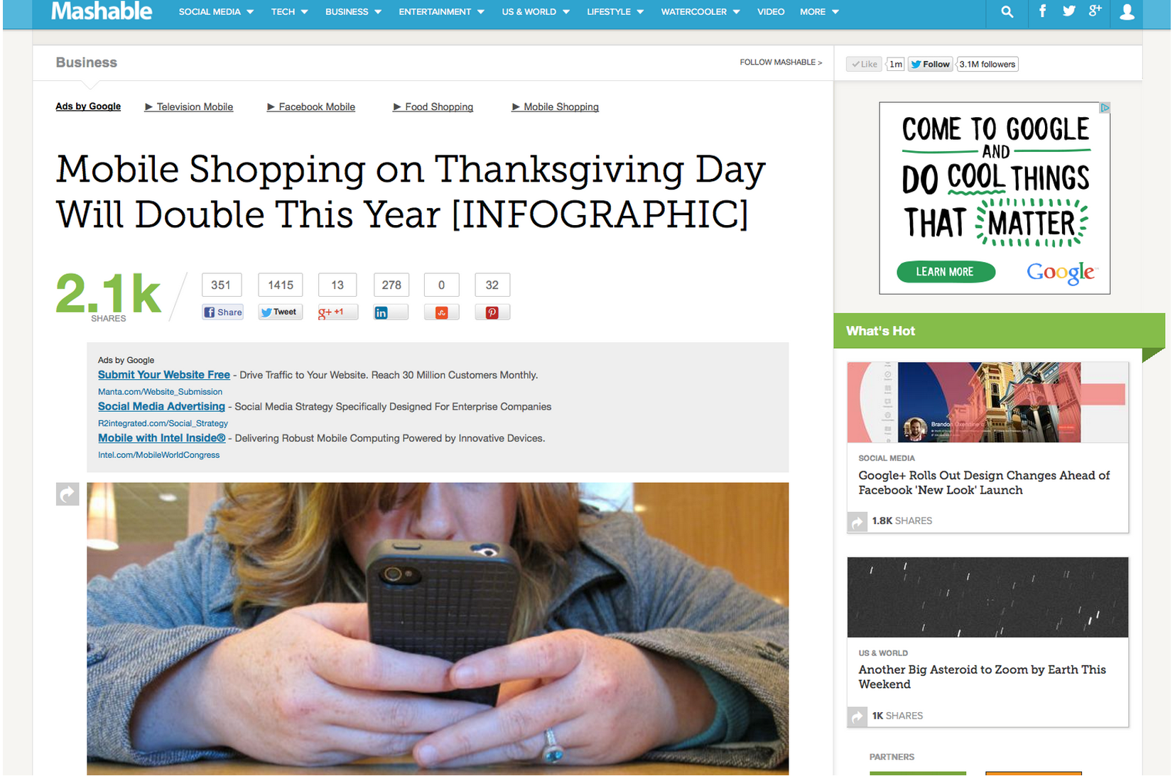 The first instance of someone using our picture of Amanda and her hands was in this Mashable post. They actually took down the image after Amanda (jokingly) called them out on their associated headline: “Google Fixes the Fat Finger Problem with Mobile Ads.”
